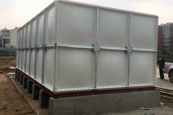 如果是用水箱板和膠條組成我們需要尺寸的水箱,雖然不透水了,但是還不能盛水,因為盛水之后水箱會承受一個向外的張力,必須加上拉筋系統受力,否則玻璃鋼水箱會形成一個高力矩體系,很容易撐壞。拉筋系統有圓鋼,內外拉筋板,對拉螺栓。