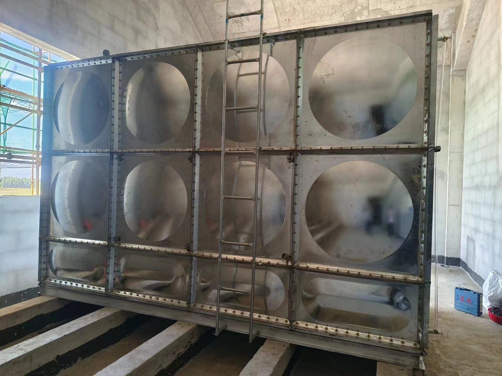 我廠承接的河北武邑縣高速服務區一臺25立方鍍鋅鋼板水箱已經安裝試水完成,水箱安裝在樓頂做為消防用水使用。現場實拍照片如下: