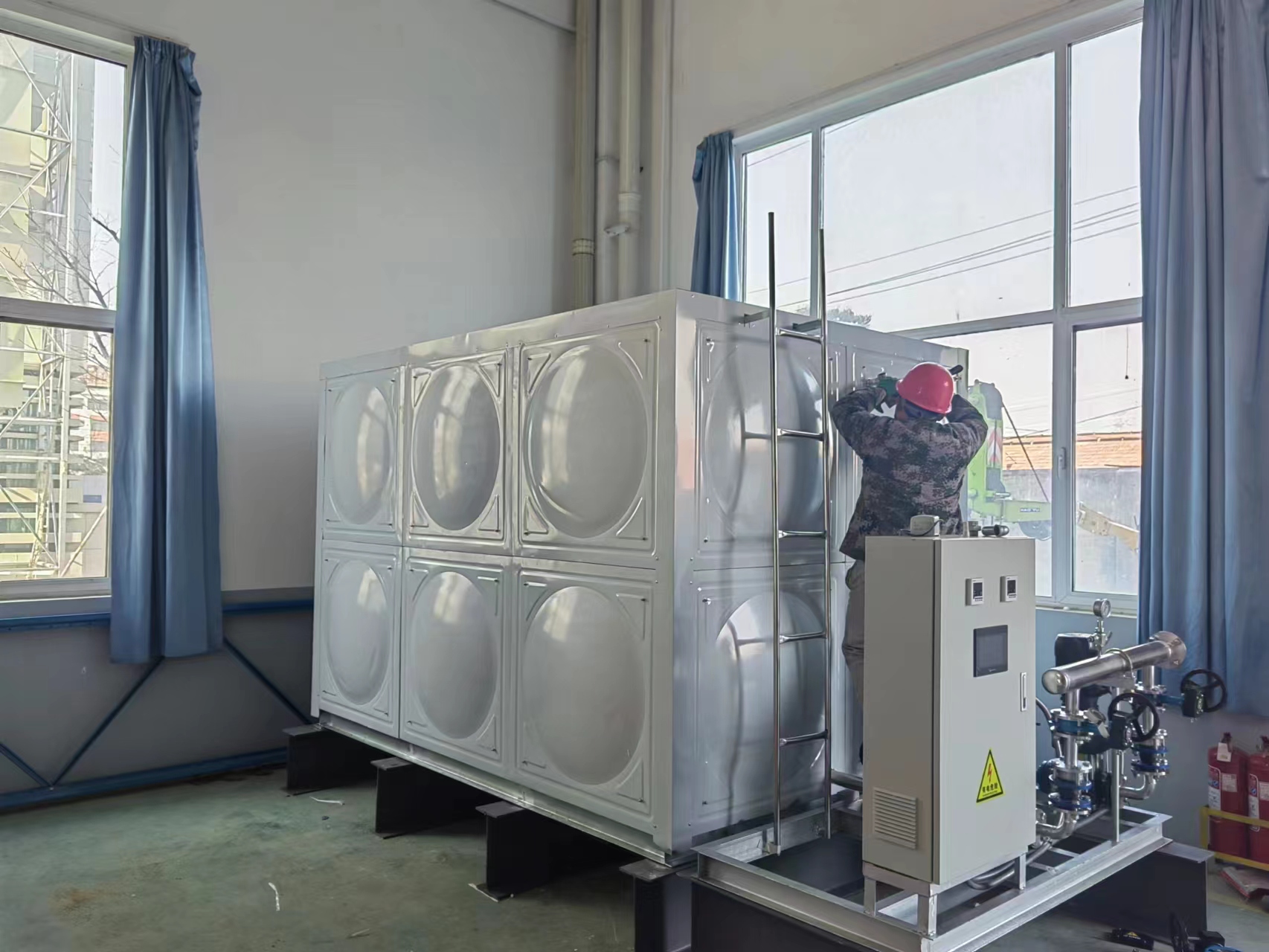 我公司承接的山東省濰坊星宇集團一臺聚氨酯304不銹鋼保溫水箱已經安裝完成,水箱用做生活水箱,客戶對我公司產品質量和安裝師傅的手藝表示滿意和認可?,F場實拍照片如下: