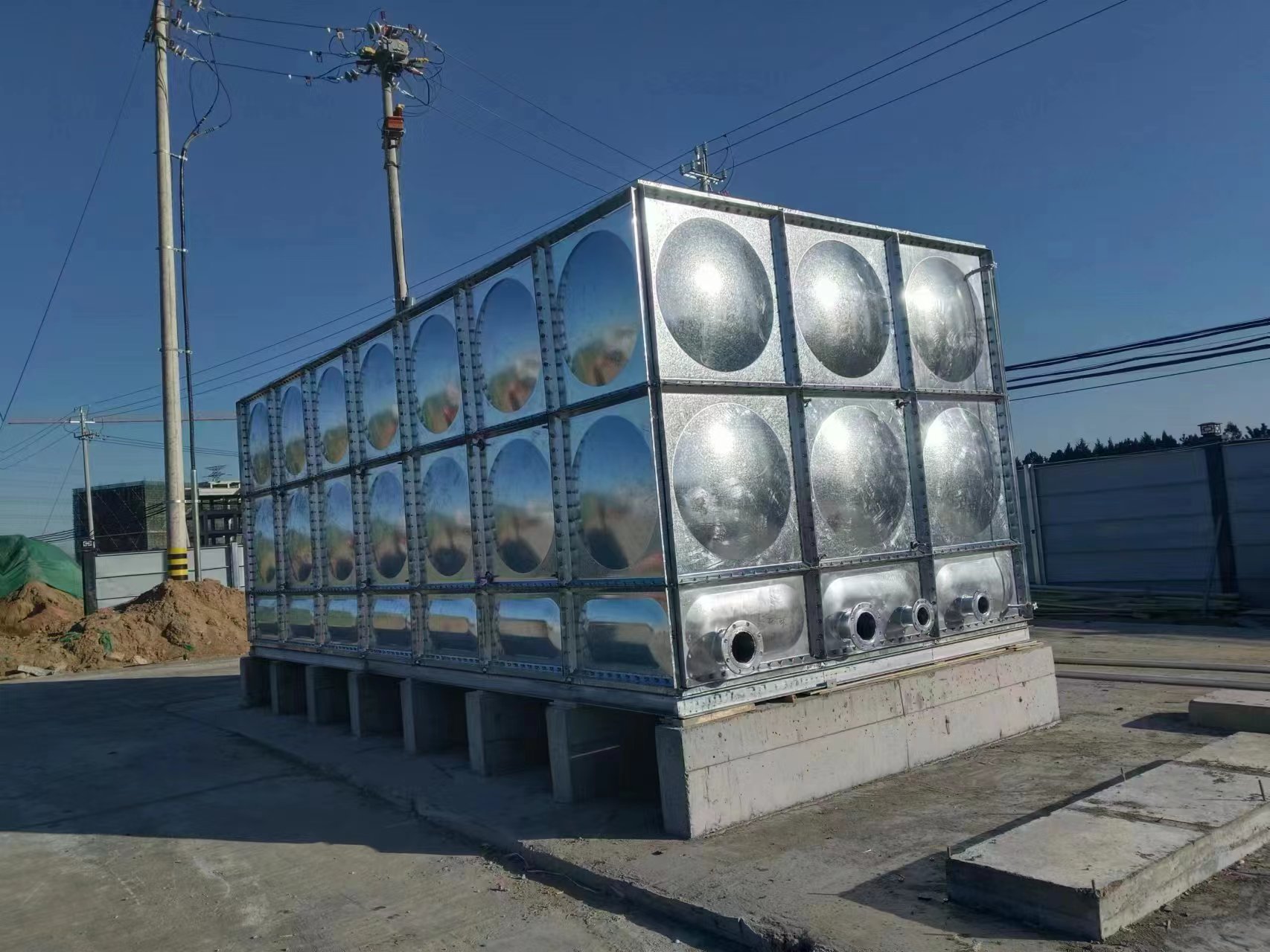 3、鍍鋅水箱對安裝現(xiàn)場無特 殊要求,無 需 吊裝設(shè)備,容積可滿 足用戶要求。